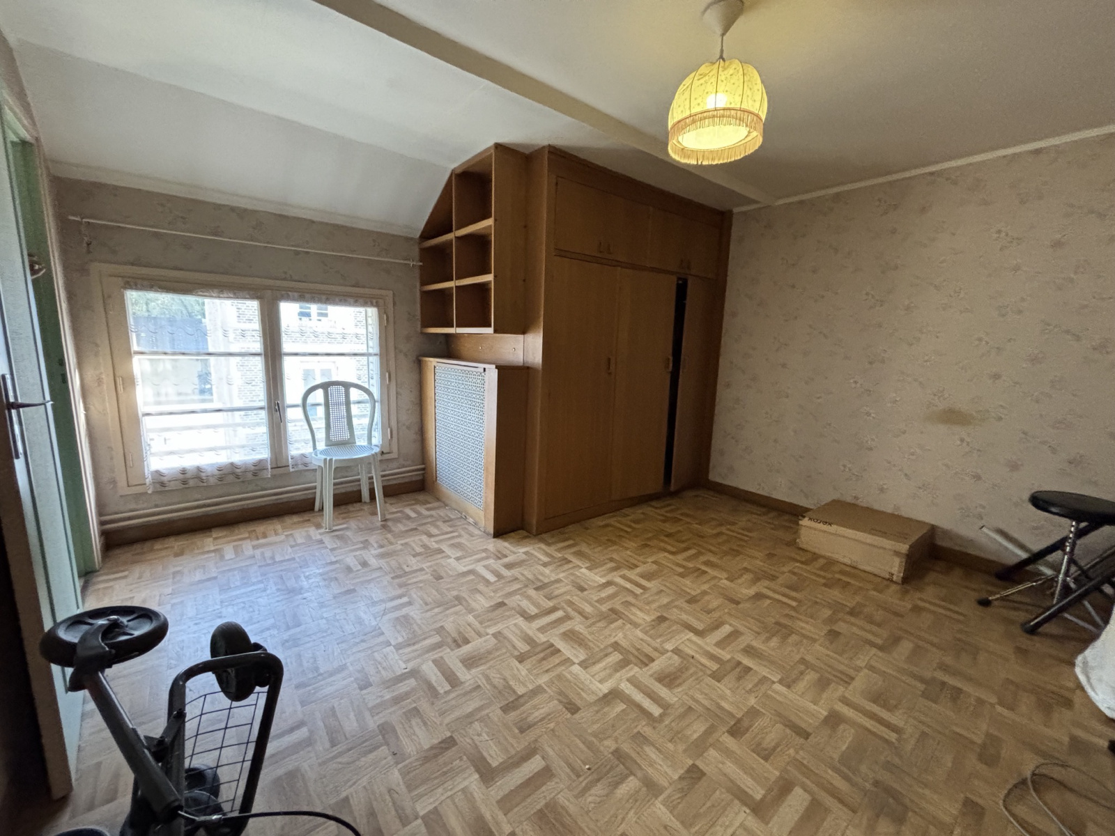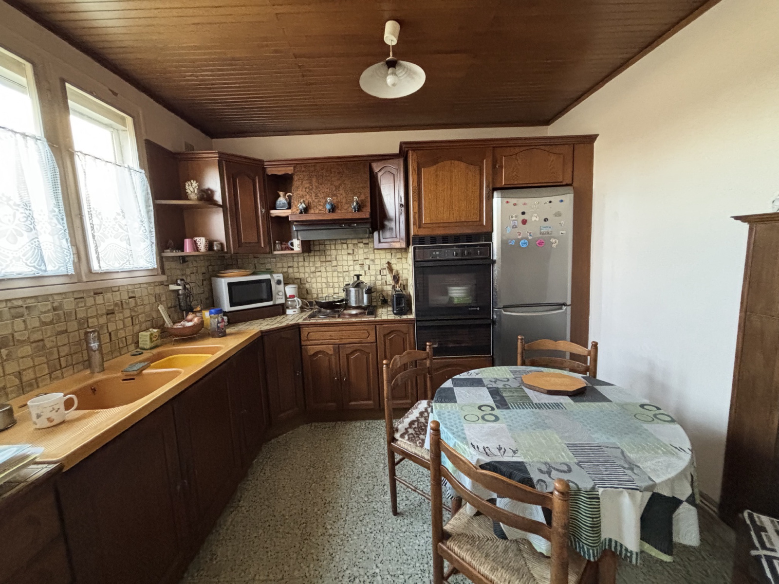 Dans le centre du village, maison comprenant salle à manger, 2 chambres réunissable en grand salon, cuisine séparé, salle d'eau, wc séparé, salle d'eau chaufferie, et à l'étage 2 grandes chambres avec grenier: possibilité transformation ou 3e sdb.