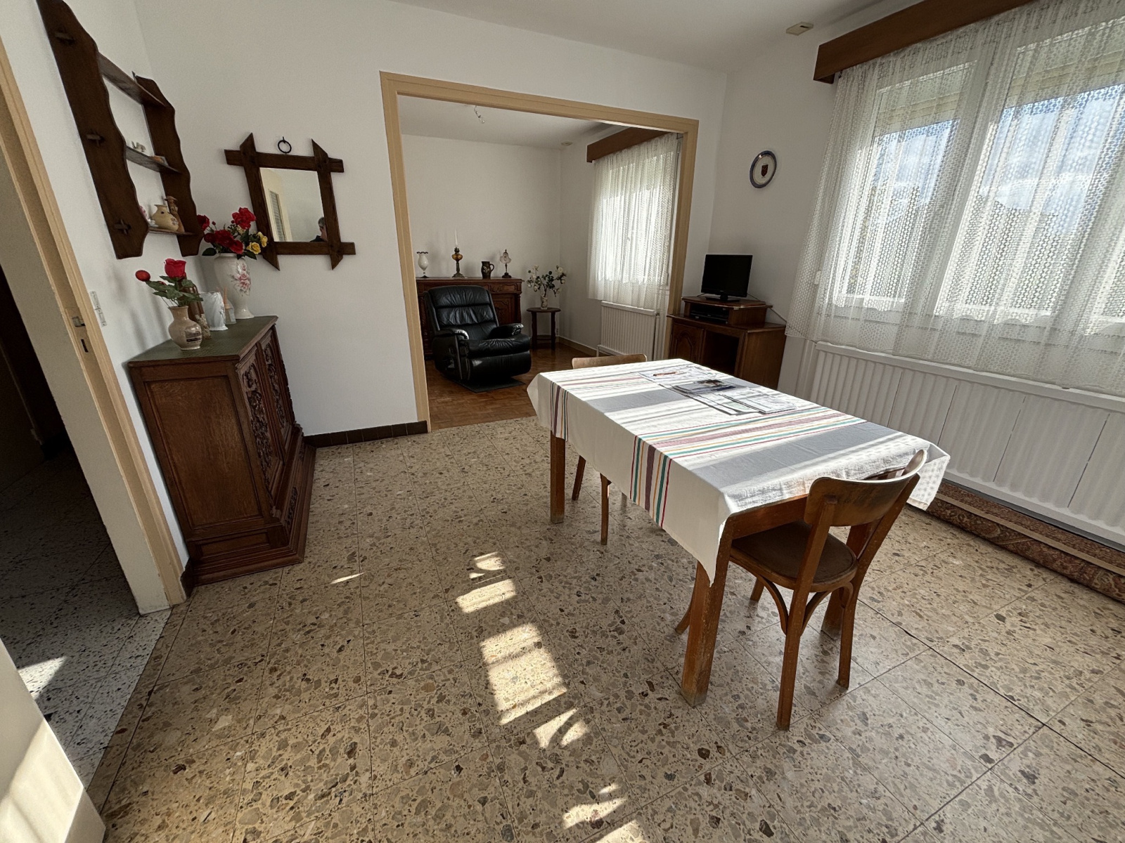 Maison individuelle au calme en bordure de foret, à Béthisy-Saint-Pierre (60320) vivable de plain pied. Elle se compose d'un rez-de-chaussée offrant une cuisine, un double séjour, deux chambres, une salle d'eau, wc et un accés sur sous sol total. A l'étage: un grand palier pouvant servir de bureau ou de chambre supplémentaire ( 26m²), une chambre avec rangement sous rampant ( 17 m² ), grenier sur meme niveau ( 13 m² ) pouvant acceuillir une chambre. nombreux rangements. Sous-sol divisé en garage, jardin de 1050 m². chauffage gaz, tout à l'égout, double vitrage, terrasse.garage, dépendance, vmc double flux. électricité a revoir.